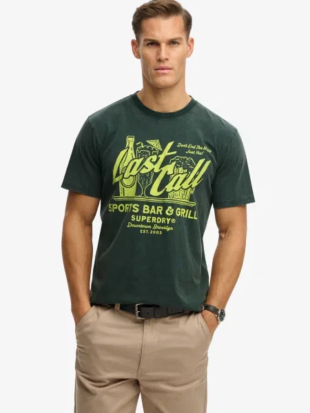Superdry & Co Póló LOCAL BUSINESS neonzöld / sötétzöld
