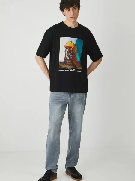 Marcelo Burlon Póló Bunny Heart Basic T-Shirt Black Red férfi nyomott mintás