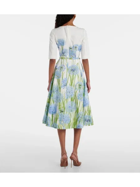 Oscar De La Renta Virágos térdig érő puplin midi ruha
